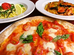 ピザやパスタのセットには、サラダやドリンクバーが付いてくるので、ゆっくりおしゃべりしたい日にもぴったりです。